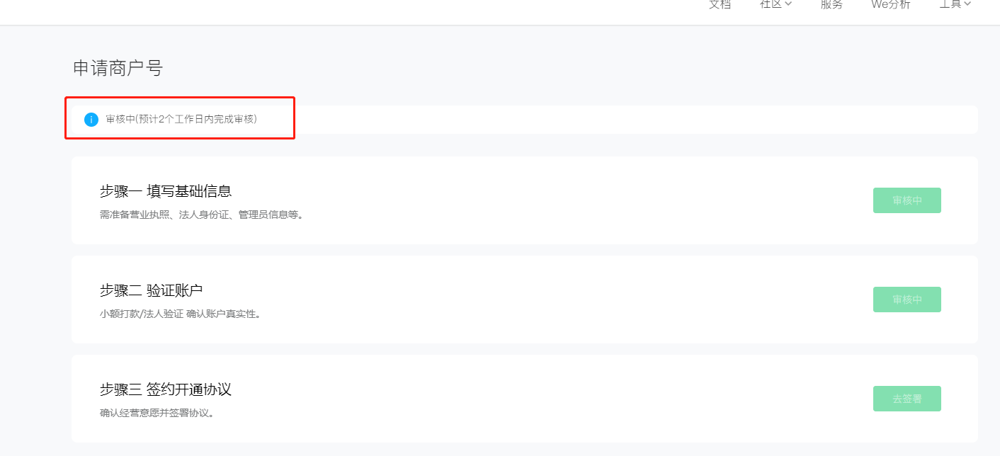 ③ 提交后,需要审核,在“基础信息”审核中期间,进行下一步“步骤二验证账户”